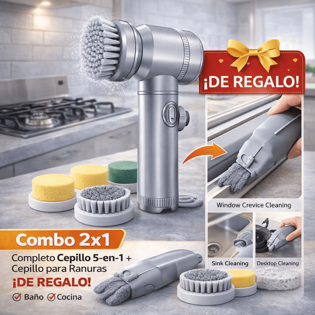 0% OFFCOMBO LIMPIEZA PRO 2x1: Cepillo portátil 5 en 1 + Regalo cepillo para ranuras